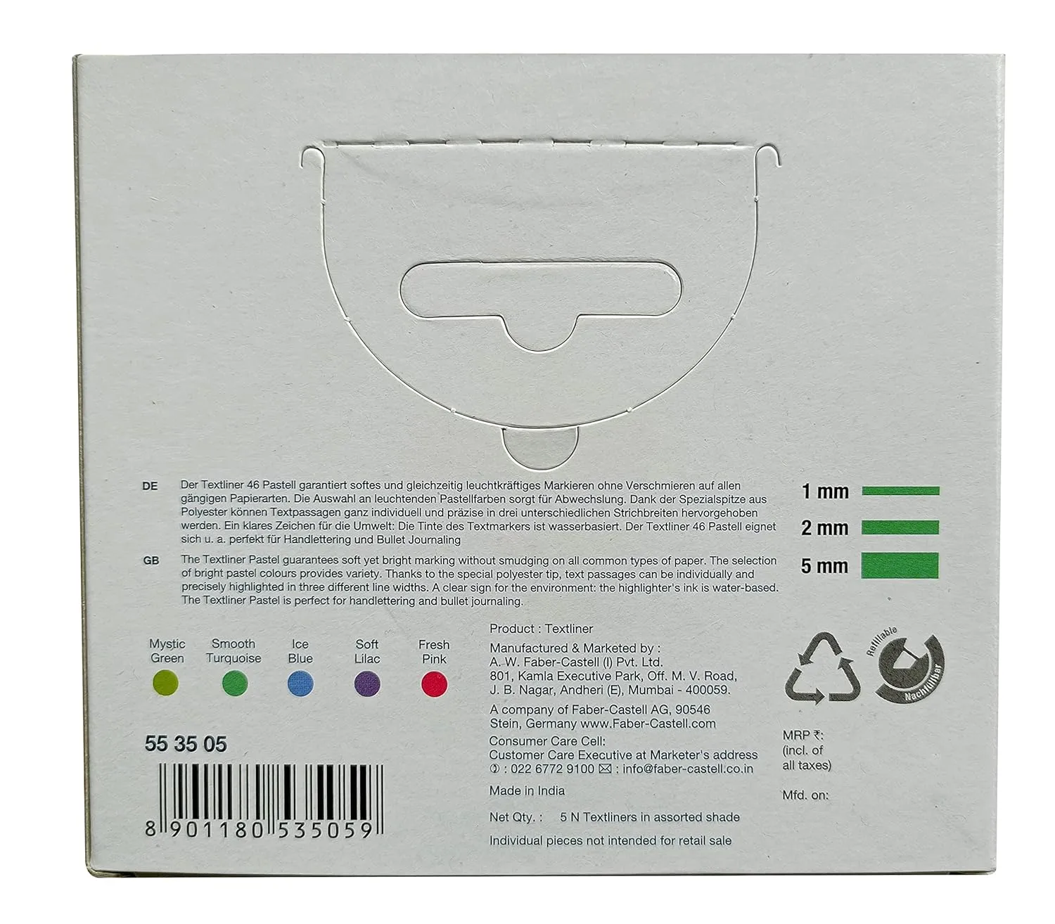 Faber-Castell A.W. Chisel Point Tip Textliner Pastel -Wallet Of 5 (553505), Multicolor