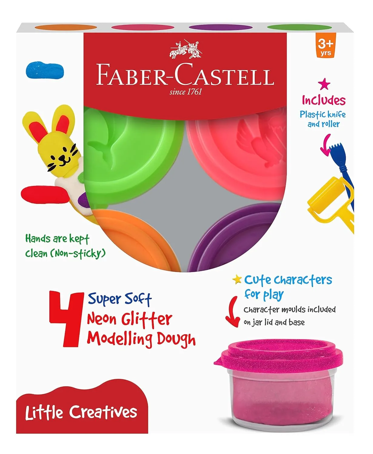 Faber-Castell Modelling Dough Neon Glitter Set Of 4
