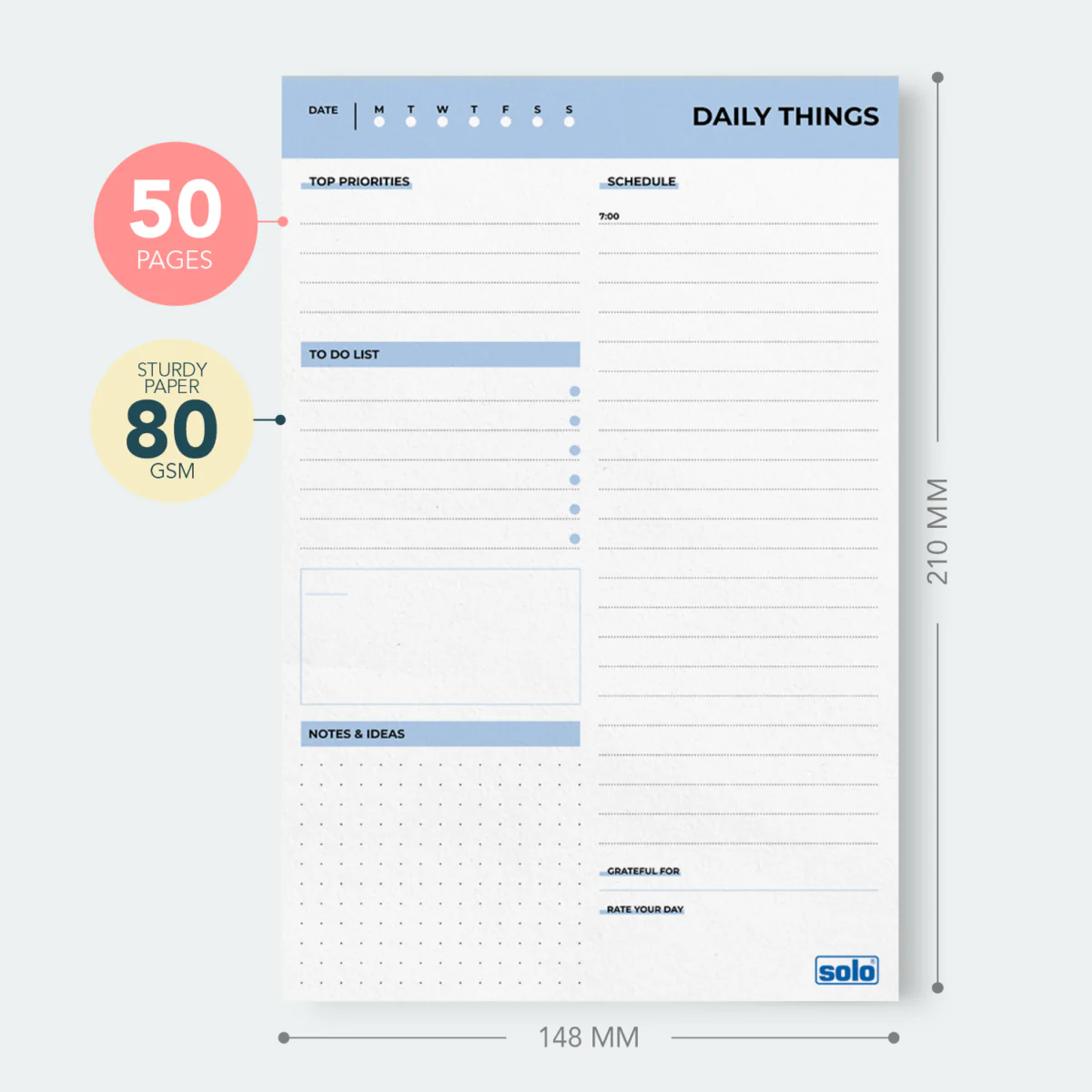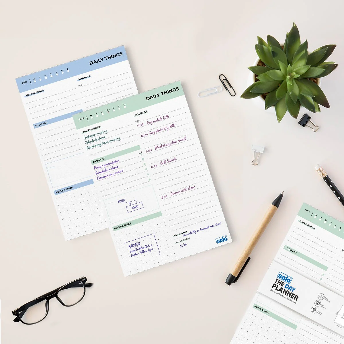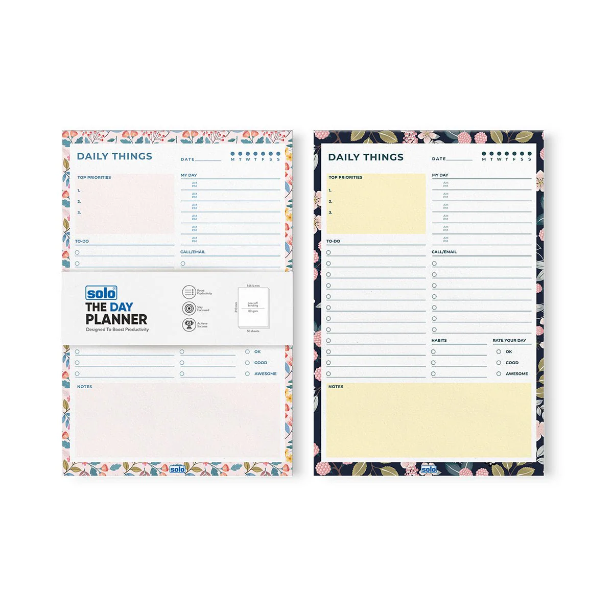 Solo A5 Tear Off Daily Planner | Comprehensive Daily To Do List | For Office, Home & School | 50 Sheets Per Pad, 80 GSM, Pack of 2