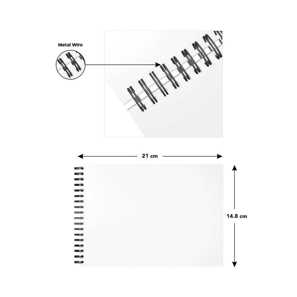 Binding & Cover – Our mixed media sketchbooks feature a metal spiral binding, available in both portrait and landscape orientations, with a smooth flip-open hardcover to make it easier to draw with either hand and making use of all the space on the page. A 300 GSM back hardcover provides you with all the support you will need for your artwork.