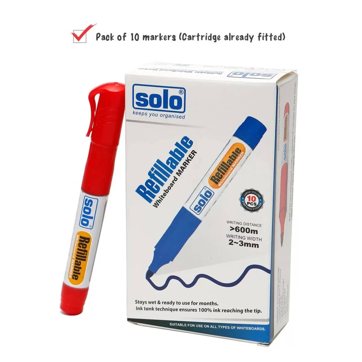 Solo Refillable White Board Marker Pen with Liquid Ink Tank Technology (Pack of 10) WBM01