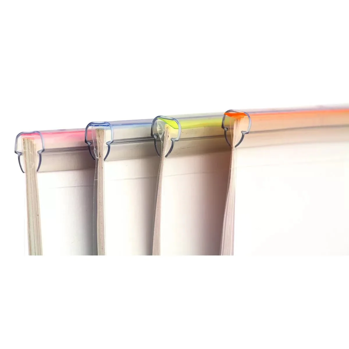 High resilience strip (channel) pinches 1-30 sheets firmly without losing strength even after a few sheets are removed from the report covers.